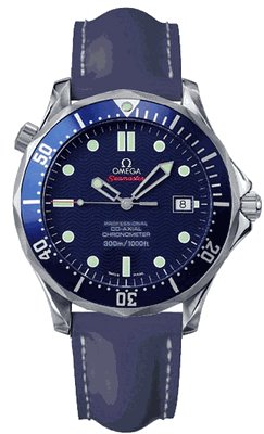 Nautical looks and superior quality distinguish this handsome Omega watch. A blue rubber wristband accented by contrast stitching joins to a round, stainless steel case that's 41 millimeters in diameter and features a blue bezel. An intriguing blue wave design on the dial lets luminescent hour indicators and luminescent skeleton hour hands take center stage. A date window at the three o'clock position and a water resistance rating of 984 feet add function to this sporty Omega timepiece.Available at Amazon ******** Check Price Now! *********